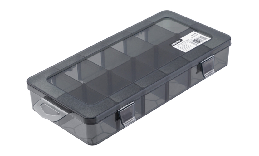 Πλαστική ταμπακιέρα 12 θέσεων της Deli, ιδανική για την αποθήκευση βιδών, καρφιών, παξιμαδιών, ασφαλειών ή άλλων μικρών εξαρτημάτων.Στο εσωτερικό της διαθέτει αφαιρούμενα μέρη που σας επιτρέπει να προσαρμόσετε τον χώρο της ταμπακιέρας ανάλογα με τις ανάγκες σας.