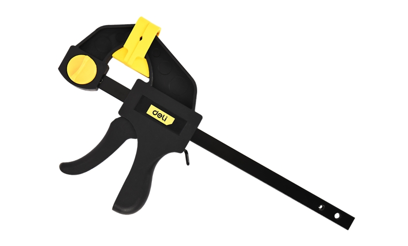 Σφιγκτήρας σκανδάλης της Deli ιδανικός για γρήγορη και σταθερή συγκράτηση αντικειμένων. Εξοπλίζεται με σκανδάλη για εύκολη και σταδιακή σύσφιξη, ενώ, τα άκρα συγκράτησης, είναι επενδυμένα με μαλακό λαστιχένιο υλικό που δεν φθείρει τα αντικείμενα.