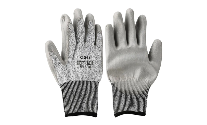 Γάντια εργασίας Deli με εξαιρετική αντοχή σε κοψίματα, ιδανικά για εργασίες κοπής γυαλιού και άλλων αιχμηρών αντικειμένων. Τα γάντια εργασίας Deli προσφέρουν σταθερό κράτημα, αυξάνοντας την παραγωγικότητα σας, ενώ παράλληλα προστατεύουν από πιθανά ατυχήματα.