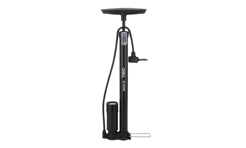 Υψηλής απόδοσης τρόμπα χειρός της Deli, που μπορεί να χρησιμοποιηθεί για το φούσκωμα ελαστικών αυτοκινήτου, μοτοσυκλετών, ποδηλάτων, παιχνιδιών κ.α. Εξοπλίζεται με μανόμετρο και υποστηρίζει πιέσεις έως 120PSI.Διαθέτει μεταλλικό σώμα, σωλήνα φουσκώματος μήκους 65cm, 2 διαφορετικές βαλβίδες ενώ ενσωματώνει και θήκη για την τοποθέτηση των βαλβίδων.