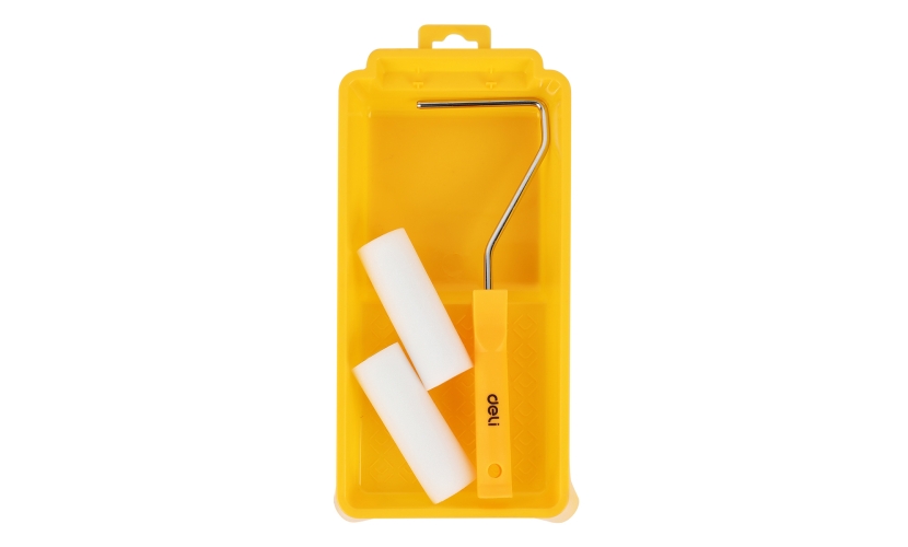 Σετ βαφής 4 σε 1 της Deli το οποίο αποτελείται από 2x ρολά βαφής, 1x λαβή ρολού και 1x σκάφη βαφής.