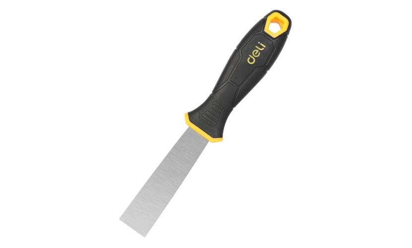 Σπάτουλα της DELI με ανθεκτική λάμα από ανοξείδωτο ατσάλι και άνετη αντιολισθητική λαβή. Είναι ιδανική για εργασίες στόκου, σοβά, αφαίρεσης βαφής και άλλες εφαρμογές.
