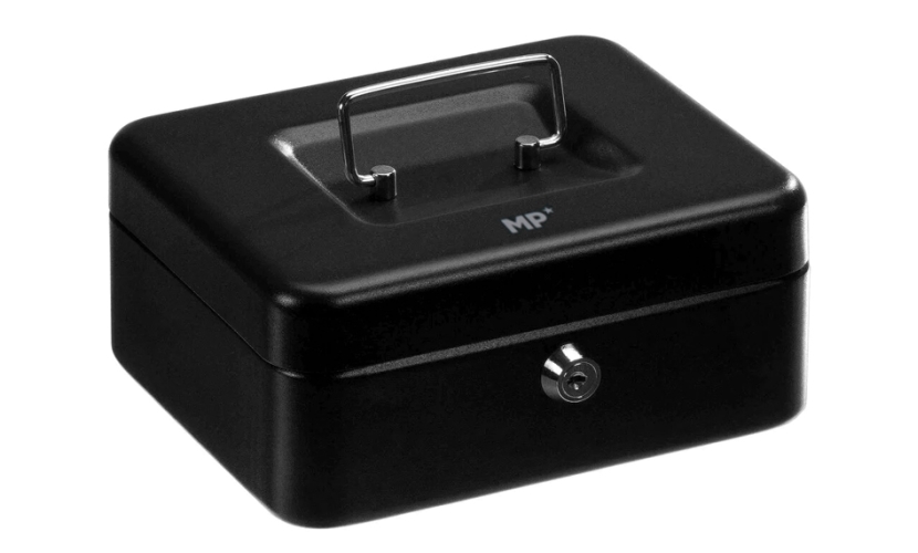 Μεταλλικό κουτί της MP ιδανικό για την οργάνωση του ταμείου σας. Διαθέτει αποσπώμενη, εσωτερική θήκη 6 θέσεων, για την αποθήκευση νομισμάτων και άλλων μικροαντικειμένων και μεταλλική λαβή για την εύκολη μεταφορά του. Περιλαμβάνει 2 αντικλείδια.