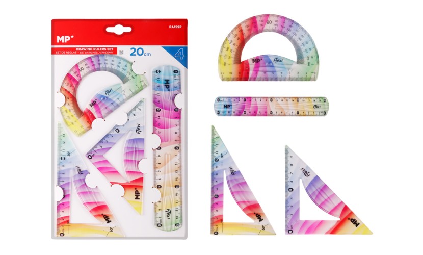 Σετ εύκαμπτοι πλαστικοί χάρακες/γεωμετρικά όργανα της MP, ιδανικοί για ακριβείς μετρήσεις και σχεδίαση στο σχολείο, το γραφείο ή το σπίτι.