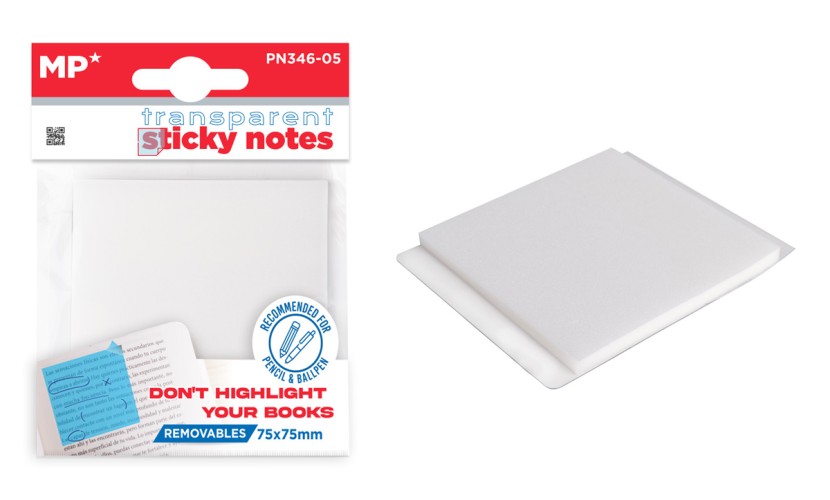 MP αυτοκόλλητα χαρτάκια σημειώσεων PN346-05, 75x75mm, διάφανα, 50τμχ