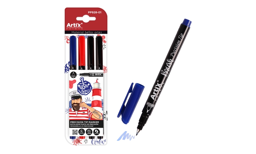 ARTIX PAINTS μαρκαδόρος σχεδίου PP928-01, μπλε/μαύρο/κόκκινο, 4τμχ