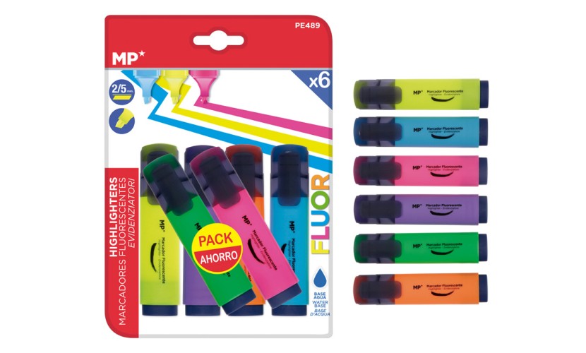 MP μαρκαδόρος υπογράμμισης PE489, πάχος μύτης 2-5mm, 6 χρώματα