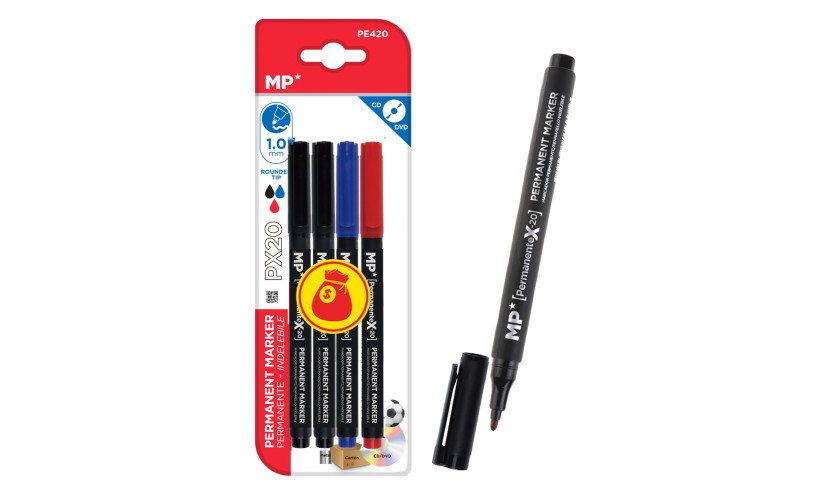 MP σετ ανεξίτηλος μαρκαδόρος PE420, 1mm μύτη, μαύρος/μπλε/κόκκινος, 4τμχ