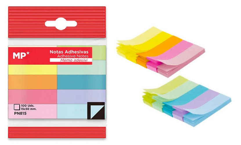 MP αυτοκόλλητοι σελιδοδείκτες PN815, 15x50mm, 1000τμχ, χρωματιστοί