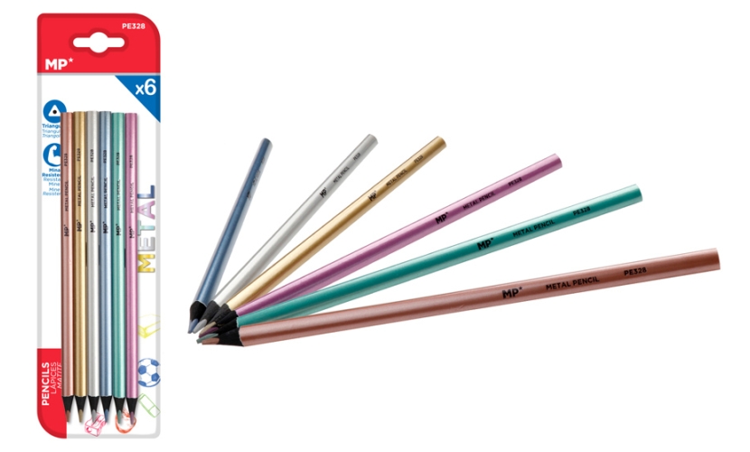MP χρωματιστές ξυλομπογιές PE328, τρίγωνες, μεταλλικό χρώμα, 6τμχ