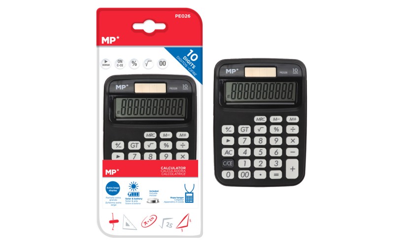 MP αριθμομηχανή PE026, ηλιακό & μπαταρίες, 10 ψηφία, μαύρη