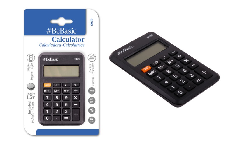 BEBASIC αριθμομηχανή τσέπης S059, μπαταρίας, 8 ψηφία, μαύρη