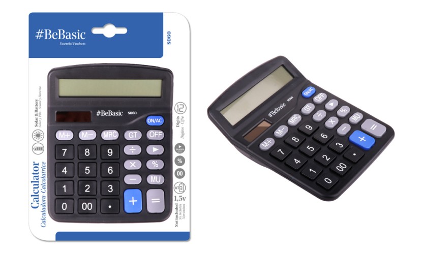 Αριθμομηχανή 12 ψηφίων της BeBasic με μεγάλα πλήκτρα, για εύκολη και γρήγορη πληκτρολόγηση, χωρίς λάθη.Τροφοδοτείται από μπαταρία αλλά διαθέτει και solar για λειτουργία από το ηλιακό φως.Διαθέτει ευανάγνωστη οθόνη, η οποία καλύπτει όλο το πλάτος της συσκευής.