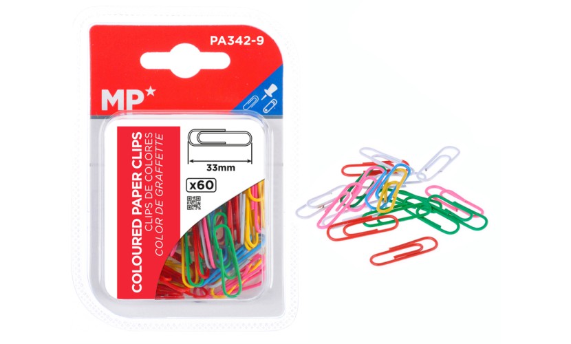 MP συνδετήρες PA342-9, μεταλλικοί, 33mm, χρωματιστοί, 60τμχ