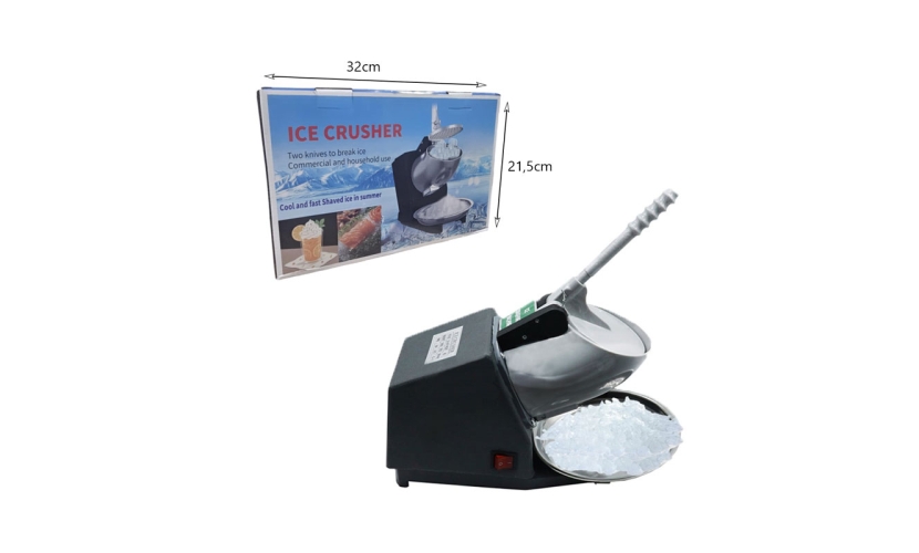 Ο ηλεκτρικός θρυμματιστής πάγου είναι η ιδανική λύση για επαγγελματική και οικιακή χρήση, με δύο ισχυρές λεπίδες για ταχεία και αποτελεσματική θραύση πάγου.
