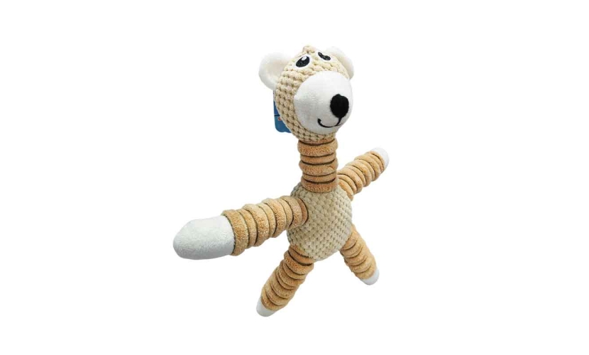 Λούτρινο παιχνίδι για σκύλους σε σχήμα αρκούδου, ιδανικό για διασκέδαση και εκτόνωση. Όταν το πατάτε, παράγει χαρακτηριστικό ήχο “squeak” που τραβάει την προσοχή του κατοικίδιου. Ύψος 41cm. Κατάλληλο για όλα τα μεγέθη σκύλων.