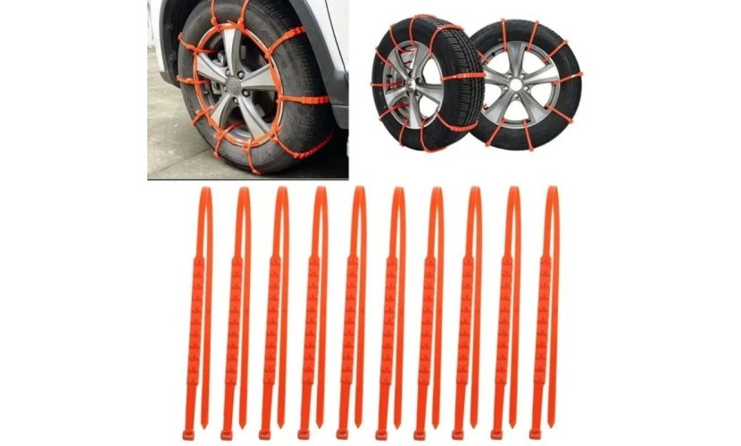 Οι συγκεκριμένες πλαστικές αλυσίδες είναι ο πιό οικονομικός και απλός τρόπος για να οδηγήσετε σε δρόμους με χιόνι. Χαρακτηριστικά: Εύκολη και γρήγορη τοποθέτηση. Μπορούν να τοποθετηθούν σε όλους τους τύπους ελαστικών 175 έως 295. Κατασκευασμένες από υψηλής ποιότητας TPU πολυμερές, είναι ιδιαίτερα ανθεκτικές. Τα δοντάκια που διαθέτουν, βοηθούν ώστε να έχουν καλύτερη πρόσφυση στο χιόνι ή τον πάγο τα ελαστικά του αυτοκινήτου σας. Το σετ περιλαμβάνει δέκα τεμάχια. Διαθέτουν ειδικό μηχανισμό για να αφαιρούνται και να επανατοποθετούνται με ευκολία. Σε σκούρο πορτοκαλί χρώμα.