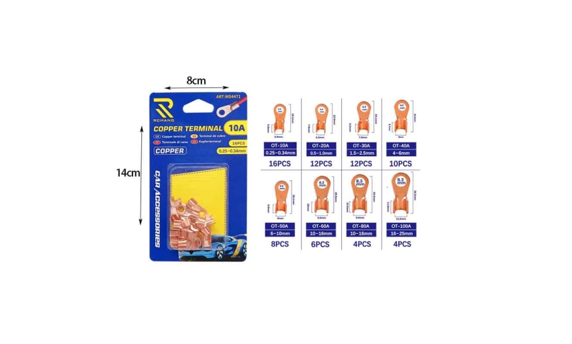 Rchang Ακροδέκτες Οπής Χάλκινο 10A 16τμχ W04471 - Copper terminal 16pcs