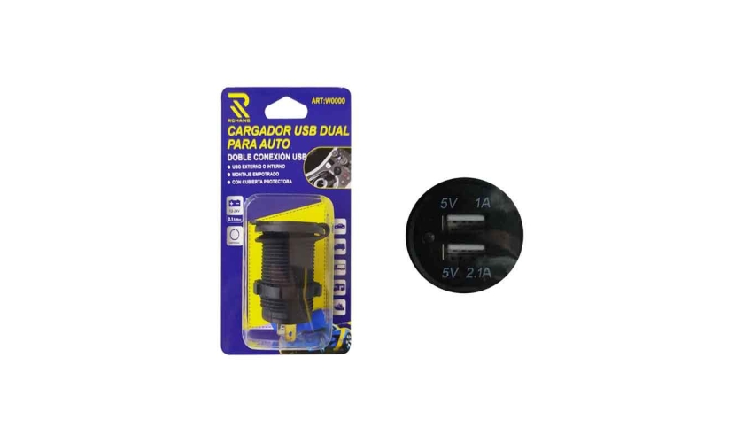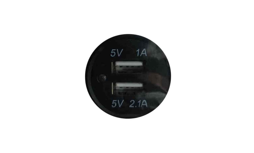 Πρακτικός διπλός φορτιστής USB για αυτοκίνητο, κατάλληλος για ενσωμάτωση σε ταμπλό ή άλλο σημείο του οχήματος. Υποστηρίζει τάση εισόδου 12V–24V και διαθέτει δύο εξόδους USB: 5V/1A και 5V/2.1A, ιδανικές για φόρτιση κινητών, GPS, tablet και άλλων συσκευών. Περιλαμβάνει καπάκι προστασίας για χρήση σε εξωτερικό ή εσωτερικό περιβάλλον.