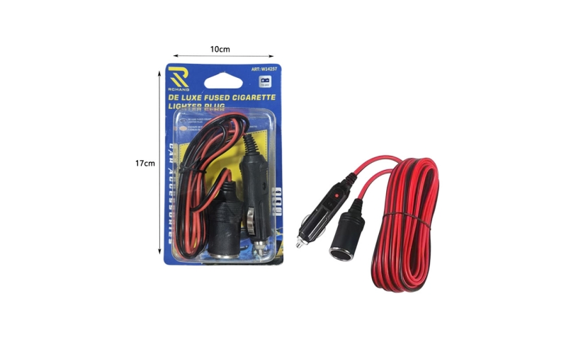 Πρακτικό καλώδιο προέκτασης αναπτήρα αυτοκινήτου με βύσμα και υποδοχή 12V, ιδανικό για την τροφοδοσία συσκευών σε μεγαλύτερη απόσταση από την πηγή ρεύματος του οχήματος. Με μήκος καλωδίου περίπου 3 μέτρα και ενσωματωμένη ασφάλεια για ασφαλή χρήση. Χαρακτηριστικά: Βύσμα και υποδοχή αναπτήρα 12V Ιδανικό για αυτοκίνητα, φορτηγά, σκάφη και τροχόσπιτα Μήκος καλωδίου: περίπου 3 μέτρα Ενσωματωμένη ασφάλεια Ανθεκτική κατασκευή Συσκευασία: 10 x 17 cm Κατάλληλο για τη σύνδεση ψυγείων αυτοκινήτου, αντλιών αέρα, φορτιστών ή άλλων συσκευών χαμηλής τάσης, προσφέροντας ευελιξία και άνεση στη χρήση.