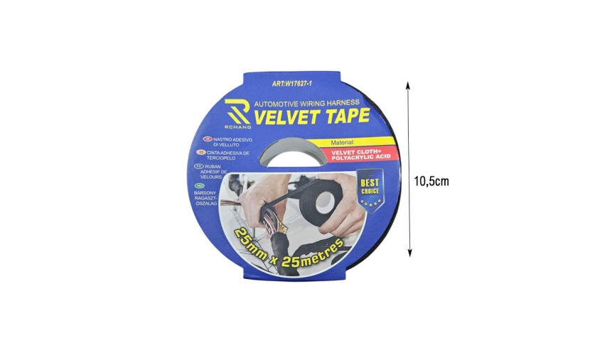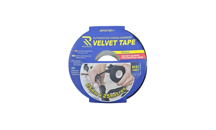 Η αυτοκόλλητη ταινία βελούδου Rchang είναι ιδανική για την τακτοποίηση και προστασία καλωδίων στο εσωτερικό του αυτοκινήτου. Με σύνθεση από ύφασμα βελούδου και πολυακρυλικό οξύ, προσφέρει εξαιρετική ανθεκτικότητα, ευκολία στην εφαρμογή και επαγγελματικό φινίρισμα. Κατάλληλη για χρήση σε συστήματα καλωδίωσης, καλύμματα και σημεία που απαιτούν μόνωση ή απορρόφηση θορύβων.