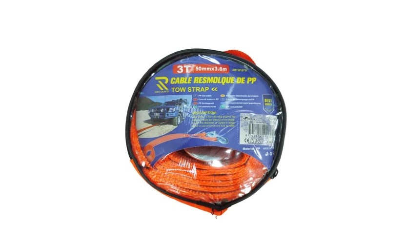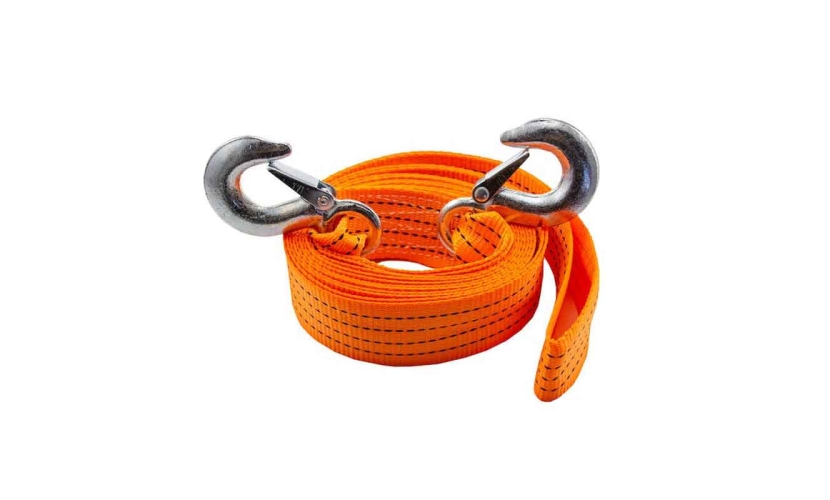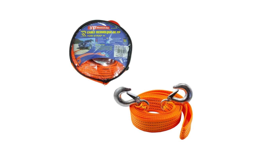 Ανθεκτικός ιμάντας ρυμούλκησης με αντοχή έως 3 τόνους, ιδανικός για την ασφάλεια και την υποστήριξη σε περιπτώσεις έκτακτης ανάγκης στον δρόμο. Διαθέτει μεταλλικούς γάντζους βαρέως τύπου με ασφάλεια για σταθερή σύνδεση μεταξύ οχημάτων.