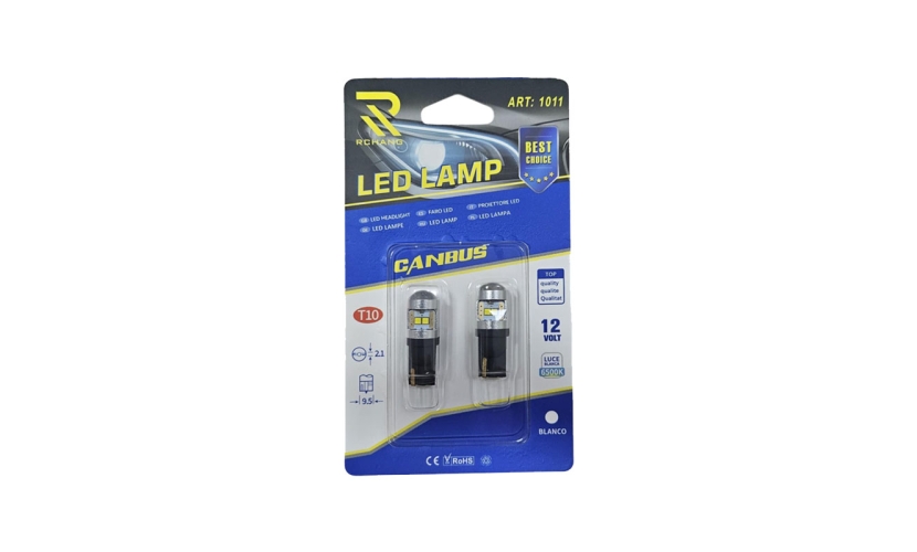 Ζεύγος λαμπών LED T10 Canbus 12V με θερμοκρασία φωτισμού 6500K, ιδανικές για χρήση σε φώτα θέσης, πινακίδας ή εσωτερικού φωτισμού αυτοκινήτου. Χάρη στην τεχνολογία Canbus αποτρέπεται η εμφάνιση σφαλμάτων στον πίνακα οργάνων, ενώ η υψηλή φωτεινότητα και η χαμηλή κατανάλωση εξασφαλίζουν καλύτερη απόδοση και μακρά διάρκεια ζωής.