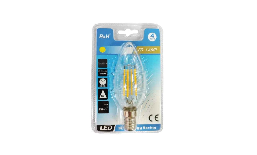 Λάμπα LED τύπου E14 ισχύος 4W και φωτεινότητας 300 lumen. Παρέχει θερμό, ευχάριστο φως ιδανικό για λάμπες νυκτός, πολυελαίους και διακοσμητικά φωτιστικά. Εξοικονομεί έως και 90% ενέργεια σε σύγκριση με τις κοινές λάμπες πυρακτώσεως.