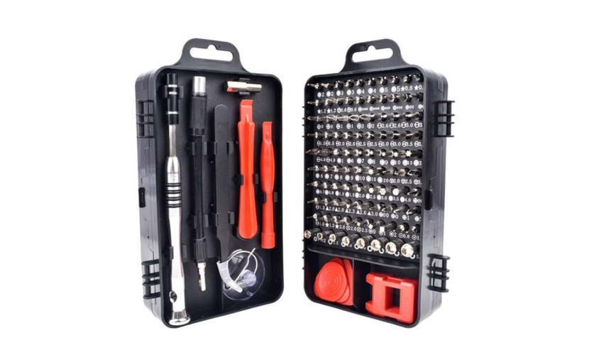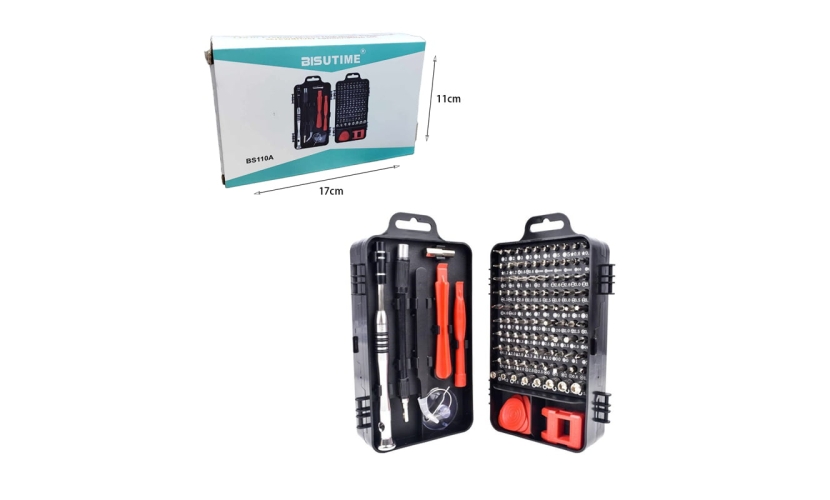 1 x Μαγνητική λαβή 1 x άξονας επέκτασης 1 x Σύντομη ανάρτηση 1 x άξονας επέκτασης από κράμα αλουμινίου 1 x Εργαλειοθήκη 1 x τσιμπιδάκια 1 x pin iPhone 1 x Μαγνήτης/Απομαγνητιστής 1 x βεντούζα 4 x βράκτια 2 x λοστός 98 x μύτες κατσαβιδιού