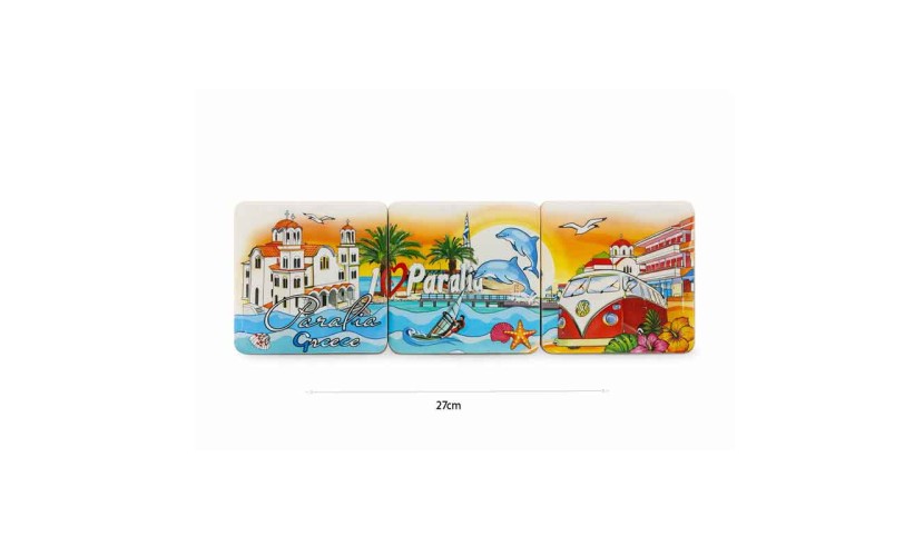 Σετ από 3 σουβέρ με θέμα την Παραλία , εμπνευσμένα από το γραφικό τοπίο και την καλοκαιρινή ατμόσφαιρα της περιοχής. Τα σχέδια απεικονίζουν χαρακτηριστικά στοιχεία όπως παραδοσιακή εκκλησία, θαλασσινά μοτίβα με δελφίνια και κοχύλια, καθώς και το εμβληματικό βανάκι σε παραθαλάσσιο σκηνικό. Με έντονα χρώματα και καλοκαιρινή διάθεση, αποτελούν ιδανική επιλογή για καθημερινή χρήση ή ως αναμνηστικό δώρο. Κατασκευασμένα από ανθεκτικά υλικά, προστατεύουν τις επιφάνειες από λεκέδες και θερμότητα, προσθέτοντας μια όμορφη ελληνική πινελιά στον χώρο σας.