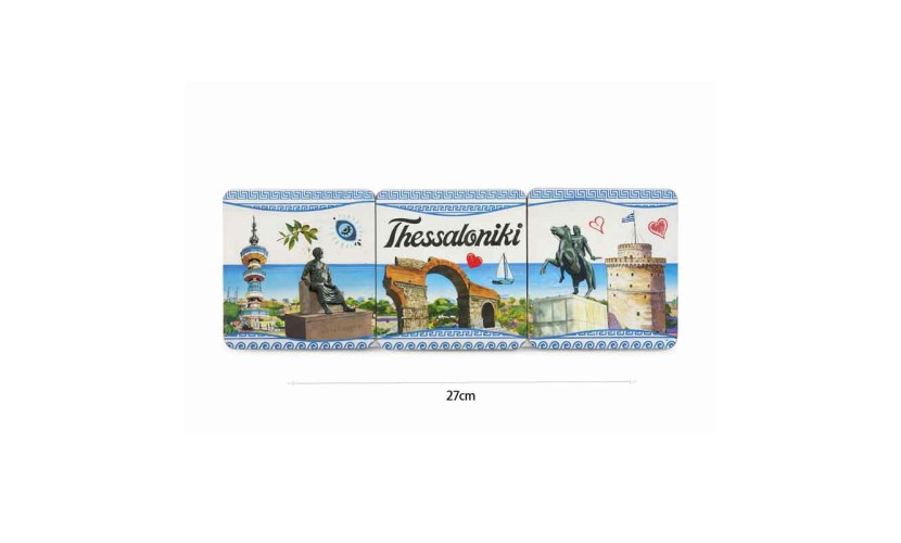 Σετ από 6 σουβέρ με θέμα τη Θεσσαλονίκη, ιδανικά για καθημερινή χρήση αλλά και ως όμορφο αναμνηστικό δώρο. Κάθε σουβέρ απεικονίζει χαρακτηριστικά σημεία της πόλης, όπως ο Λευκός Πύργος, η Αψίδα του Γαλερίου και αγάλματα-σύμβολα, προσφέροντας μια αυθεντική ελληνική αισθητική. Κατασκευασμένα με προσοχή στη λεπτομέρεια και ανθεκτικά υλικά, προστατεύουν τις επιφάνειες από λεκέδες και θερμότητα. Ιδανική επιλογή για το σπίτι, το γραφείο ή για τουριστικά καταστήματα.