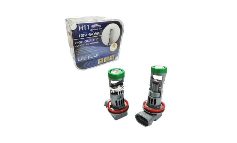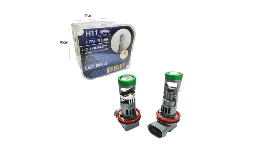 Σετ λαμπών LED H11 για αυτοκίνητο, ισχύος 50W και τάσης 12V, με υψηλή φωτεινότητα και καθαρό λευκό φως. Εξασφαλίζουν καθαρότερη και πιο αποδοτική φωταγώγηση σε σχέση με τις κοινές λάμπες αλογόνου.