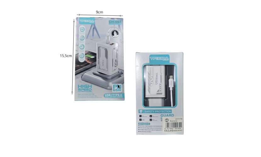 Ο Treqa CH-653 είναι ο ιδανικός φορτιστής για συσκευές που απαιτούν ισχύ και αξιοπιστία. Με τεχνολογία PD 65W και διπλή έξοδο USB + Type-C, προσφέρει ταχεία φόρτιση για smartphones, tablets, laptops και άλλες συσκευές.Εξοπλισμένος με προστασία από υπερθέρμανση, υπερφόρτωση, υπέρταση και κεραυνούς, εξασφαλίζει ασφαλή και σταθερή λειτουργία σε κάθε χρήση.