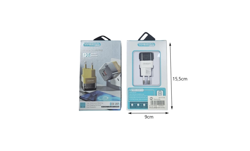 Ο Treqa CS-237 είναι ένας compact και αποδοτικός φορτιστής 38W, σχεδιασμένος για γρήγορη φόρτιση και σταθερή απόδοση. Με υποστήριξη Quick Charge, προσφέρει έξυπνη προσαρμογή ισχύος ανάλογα με τη συσκευή, ενώ η τεχνολογία Heat Dissipation βοηθά στη διατήρηση χαμηλής θερμοκρασίας για μέγιστη ασφάλεια και διάρκεια ζωής.