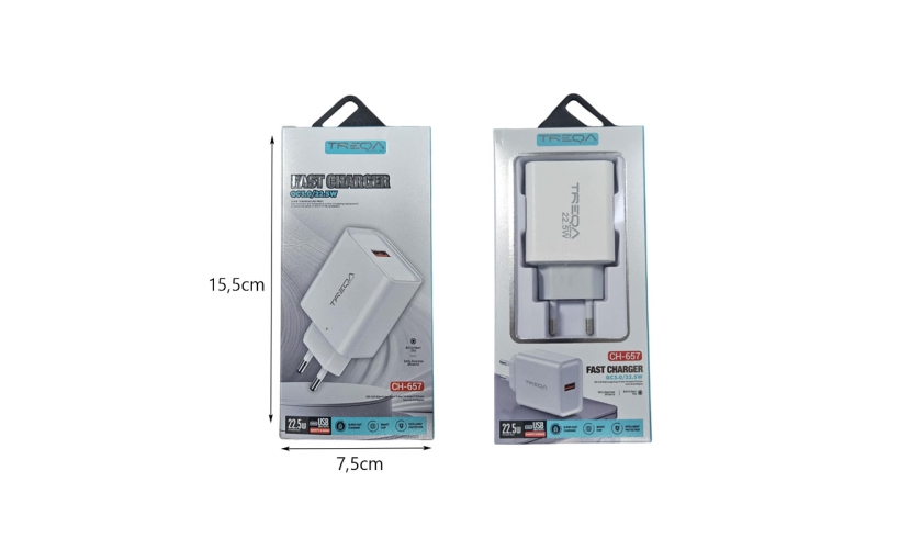 Ο Treqa CH-657 είναι ένας φορτιστής ταχείας φόρτισης 22.5W, ιδανικός για χρήστες που απαιτούν γρήγορη και ασφαλή φόρτιση σε καθημερινή βάση. Με θύρα USB και σύστημα προστασίας από υπερθέρμανση, εξασφαλίζει αξιόπιστη λειτουργία για κινητά, tablets και άλλες ηλεκτρονικές συσκευές.