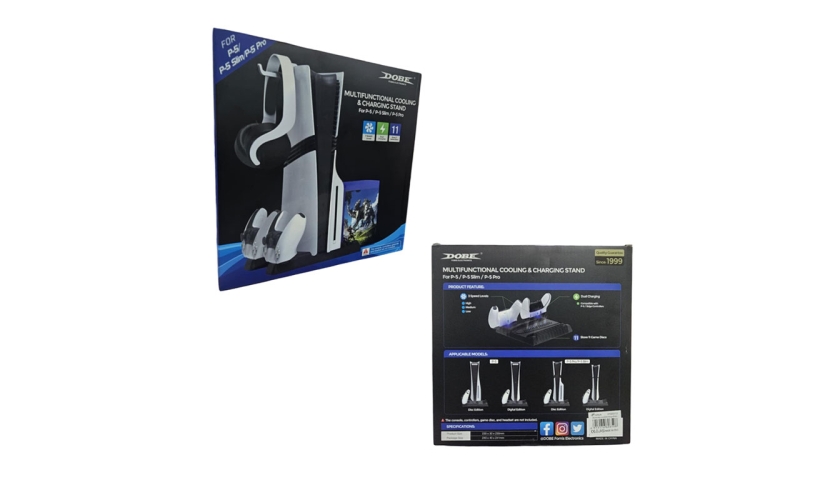 Πρακτική και πολυλειτουργική βάση ψύξης και φόρτισης, συμβατή με PS5 / PS5 Slim / PS5 Pro. Προσφέρει ολοκληρωμένη υποστήριξη για την κονσόλα και τα χειριστήριά σας, εξασφαλίζοντας αποτελεσματικό αερισμό και οργάνωση του εξοπλισμού σας.
