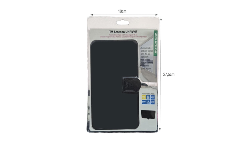 Η κεραία τηλεόρασης εσωτερικού χώρου UHF/VHF προσφέρει εξαιρετική λήψη ψηφιακών και αναλογικών σημάτων, εξασφαλίζοντας καθαρή εικόνα και σταθερή απόδοση. Είναι εξαιρετικά λεπτή και ελαφριά, γεγονός που την καθιστά εύκολη στην τοποθέτηση σε οποιονδήποτε χώρο.