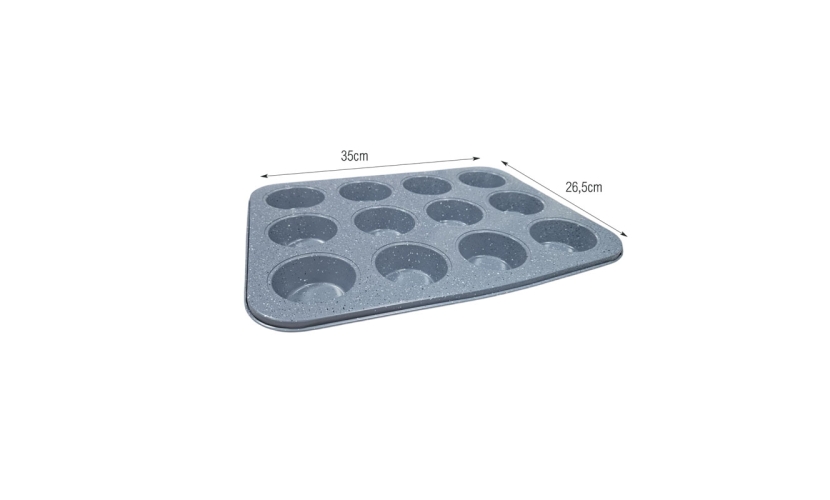 Φόρμα ψησίματος με μαρμάρινη αντικολλητική επίστρωση, ιδανική για την παρασκευή muffins, cupcakes και άλλων μικρών γλυκών. Η υψηλής ποιότητας αντικολλητική επιφάνεια εξασφαλίζει εύκολη αφαίρεση των γλυκών χωρίς να κολλάνε και απλό καθάρισμα μετά τη χρήση.