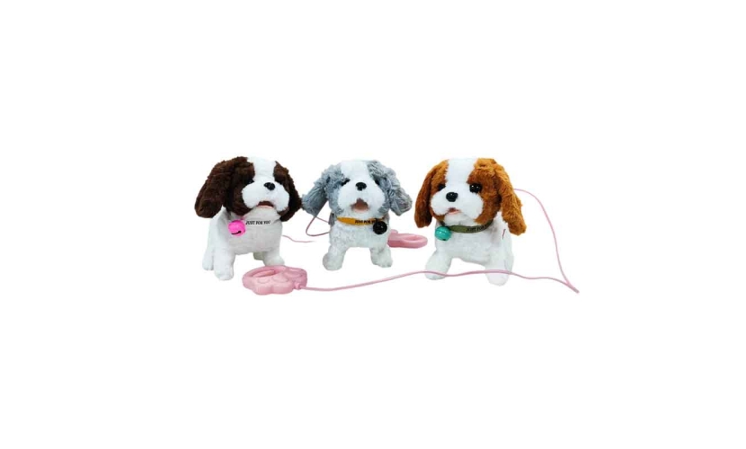 Λούτρινα σκυλάκια με ήχο, μουσική, κίνηση και…βγάλτε τα βόλτα κουνώντας χαριτωμένα την ουρά τους! Περπατάει κουνώντας χαριτωμένα την ουρά του! Λειτουργεί με 3 μπαταρίες ΑAΑ.(Δεν περιλαμβάνονται) Προσοχή: Το προϊόν διατίθεται σε διάφορα χρώματα και σχέδια και η επιλογή γίνεται τυχαία, βάσει διαθεσιμότητας. Η τιμή αφορά ένα (1) τεμάχιο και όχι το σύνολο των προϊόντων που απεικονίζονται στη φωτογραφία.