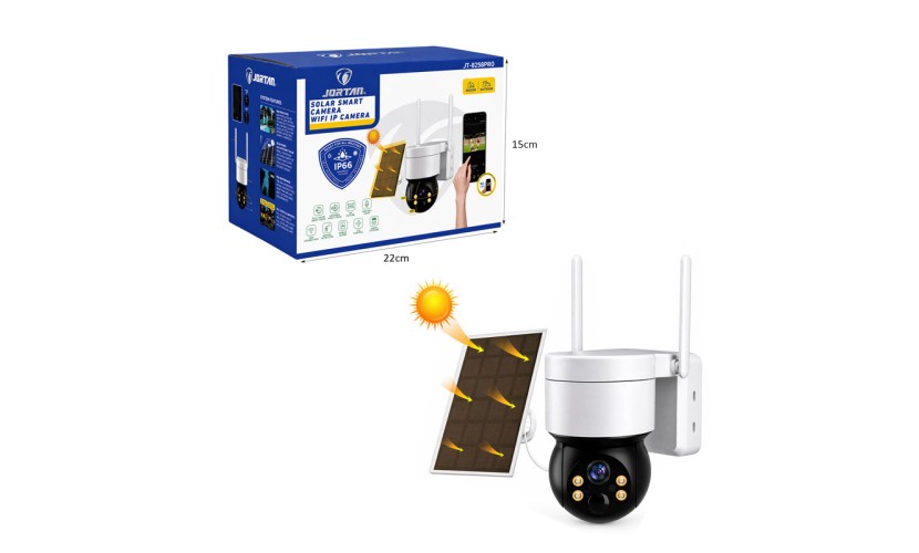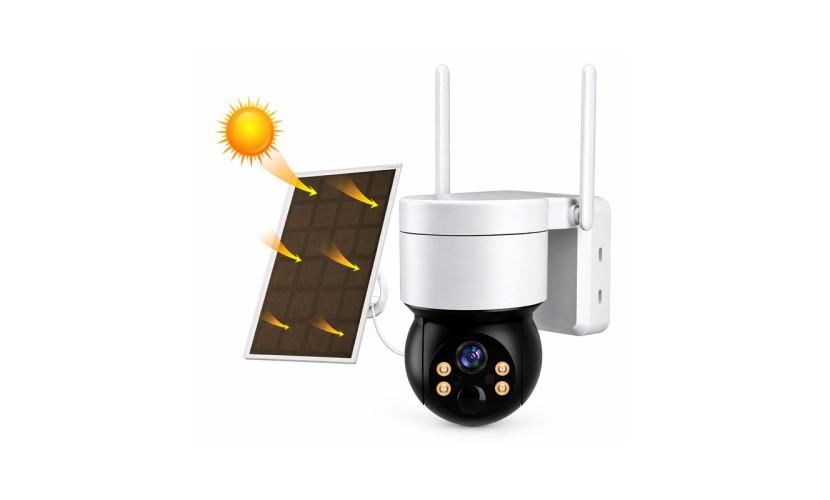Ασύρματη κάμερα ασφαλείας με ηλιακή τροφοδοσία, ιδανική για εξωτερικούς χώρους χωρίς ανάγκη καλωδίωσης. Διαθέτει ενσωματωμένο ηλιακό πάνελ που εξασφαλίζει συνεχή λειτουργία και εξοικονόμηση ενέργειας, προσφέροντας αξιόπιστη επιτήρηση όλο το 24ωρο.