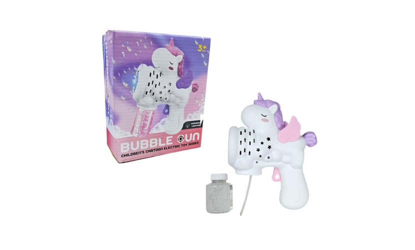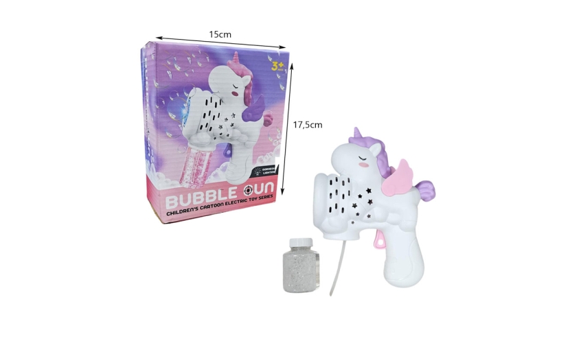 Φέρτε τη μαγεία του μονόκερου στο παιχνίδι με το Unicorn Bubble Gun! Με εντυπωσιακά φώτα που μαγεύουν και εύκολη χρήση με ένα πάτημα, αυτό το παιχνιδιάρικο πιστολάκι δημιουργεί πολύχρωμες σαπουνόφουσκες που θα ενθουσιάσουν κάθε παιδί. Κατάλληλο για ηλικίες 3 ετών και άνω, είναι ιδανικό για παιχνίδι σε εξωτερικούς και εσωτερικούς χώρους. Ένα διασκεδαστικό και ασφαλές δώρο που συνδυάζει φαντασία, φως και παιχνίδι!