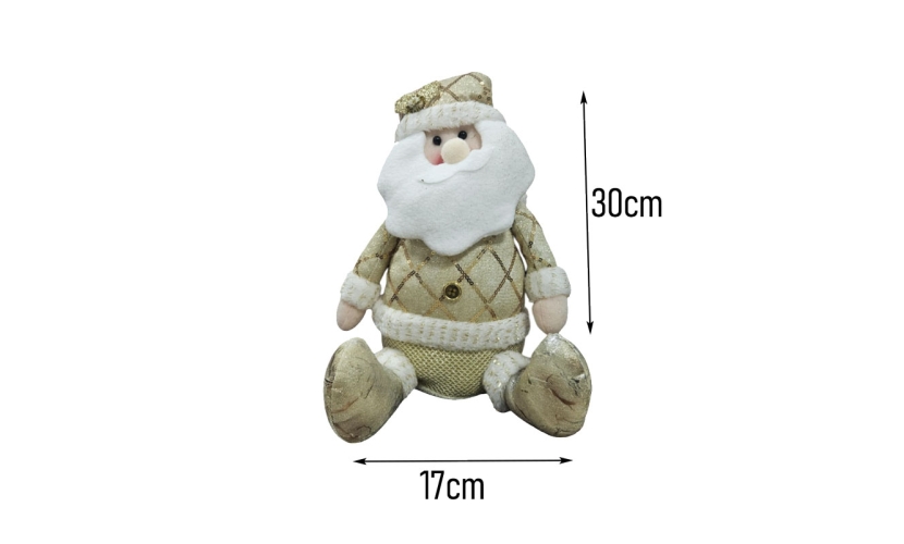 Εντυπωσιακός διακοσμητικός Άγιος Βασίλης σε χρυσή απόχρωση, ιδανικός για να προσθέσει πολυτέλεια και λάμψη στη χριστουγεννιάτικη διακόσμηση του χώρου σας. Η προσεγμένη λεπτομέρεια στο ντύσιμο και η απαλή υφή του τον καθιστούν ιδανικό για κάθε γωνιά του σπιτιού, ραφιού ή βιτρίνας. Χαρακτηριστικά προϊόντος: Ύψος: 30cm Πλάτος: 17cm Υλικό: Ύφασμα και πολυεστέρας Χρώμα: Χρυσό με λευκές λεπτομέρειες Ιδανικός για επιτραπέζια ή ραφιού διακόσμηση Ελαφρύς και σταθερός στη βάση του Ένα κομψό και διαχρονικό διακοσμητικό που θα φωτίσει τις γιορτινές ημέρες σας με στυλ.