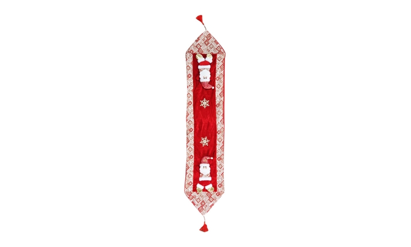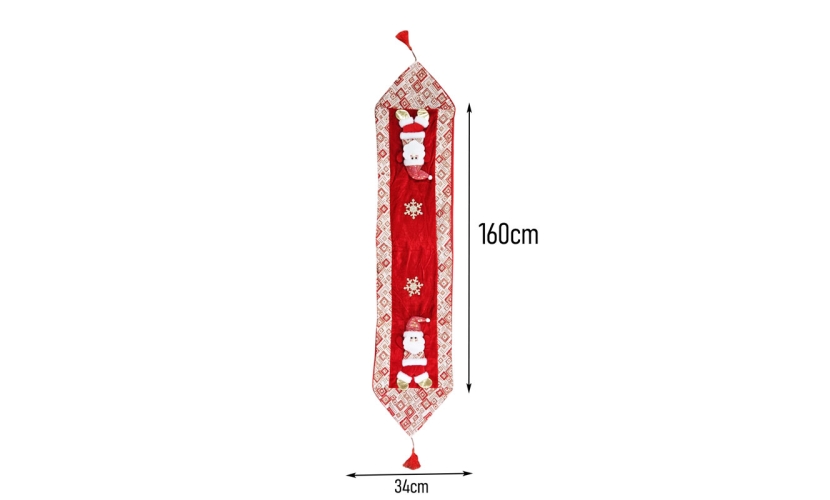 Δώστε χριστουγεννιάτικη λάμψη στο τραπέζι σας με αυτόν τον υπέροχο δρομέα τραπεζιού σε κόκκινη απόχρωση με Άγιο Βασίλη και διακοσμητικές νιφάδες χιονιού. Ο ιδανικός συνδυασμός παραδοσιακής και γιορτινής αισθητικής για να ανανεώσετε τη διακόσμησή σας κατά τη διάρκεια των γιορτών.