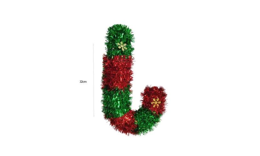 Εντυπωσιακή χριστουγεννιάτικη διακόσμηση σε σχήμα γλειφιτζούρι, με γυαλιστερές κόκκινες και πράσινες γιρλάντες και διακοσμητικές νιφάδες. Ιδανική για πόρτες, τοίχους ή το χριστουγεννιάτικο δέντρο, προσθέτει χρώμα και εορταστική διάθεση σε κάθε χώρο. Ύψος: 32cm.