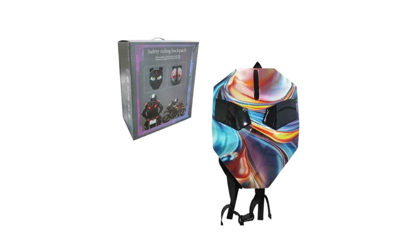 Εντυπωσιακό σακίδιο πλάτης για μοτοσυκλέτα με LED φωτισμό τύπου "μάτια", σκληρό εξωτερικό περίβλημα και δυναμικό design για υψηλή ορατότητα και μοναδικό στιλ στον δρόμο. Διαθέτει εσωτερικό χώρο για κράνος ή προσωπικά αντικείμενα, ρυθμιζόμενους ιμάντες, και είναι κατασκευασμένο από αδιάβροχα υλικά υψηλής αντοχής. Συμβατό με εφαρμογή για προγραμματισμό των φώτων.Διαστάσεις συσκευασίας: 49x40cm.