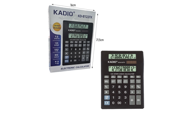 Η αριθμομηχανή γραφείου Kadio KD-8122TX είναι ιδανική για καθημερινή χρήση σε γραφεία, καταστήματα και οικιακές εργασίες. Διαθέτει μεγάλη οθόνη για εύκολη ανάγνωση και υποστηρίζει έως και 12 ψηφία, προσφέροντας ακρίβεια στους υπολογισμούς.