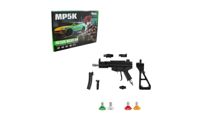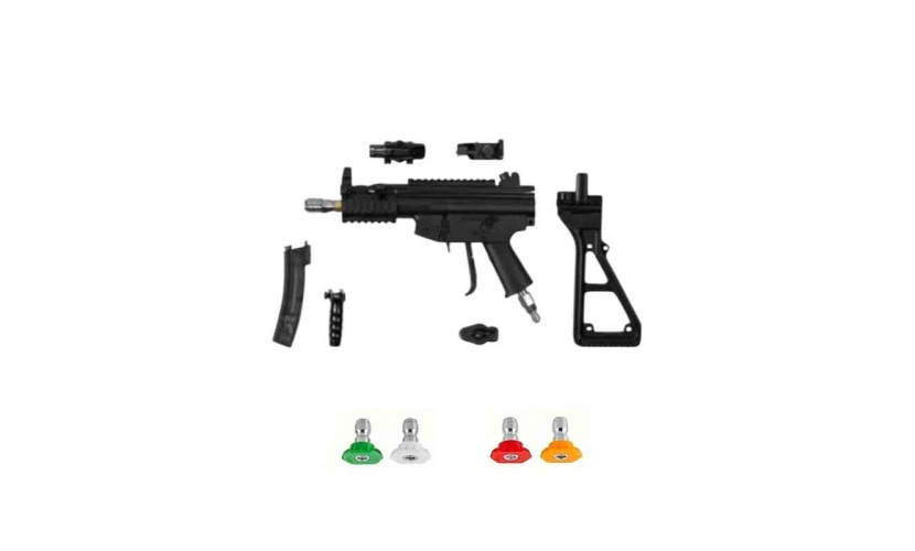 Εντυπωσιακό πιστόλι πίεσης σε σχεδίαση MP5K, ιδανικό για καθαρισμό αυτοκινήτων, μοτοσυκλετών και εξωτερικών επιφανειών. Προσφέρει ισχυρή ροή νερού και συνοδεύεται από 4 διαφορετικά ακροφύσια για ποικιλία ψεκασμού. Συμβατό με τα περισσότερα πλυστικά μηχανήματα υψηλής πίεσης.
