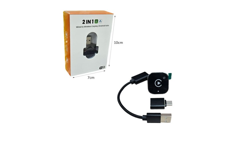 Αντάπτορας 2 σε 1 που μετατρέπει το ενσύρματο CarPlay και Android Auto σε ασύρματο, προσφέροντας μεγαλύτερη ευκολία και άνεση κατά την οδήγηση. Συνδέεται εύκολα μέσω USB και επιτρέπει τη γρήγορη και σταθερή σύνδεση του smartphone σας χωρίς καλώδια. Υποστηρίζει λειτουργίες όπως πλοήγηση, αναπαραγωγή μουσικής, κλήσεις και χρήση εφαρμογών, διατηρώντας πλήρη συμβατότητα με το σύστημα του αυτοκινήτου σας. Συμπαγής και διακριτικός σχεδιασμός, ιδανικός για καθημερινή χρήση χωρίς περιττά καλώδια στο εσωτερικό του οχήματος.