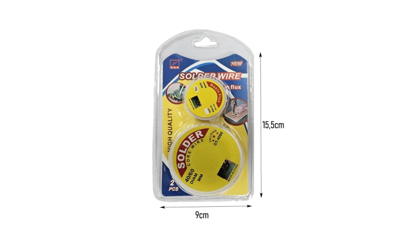 Το σετ καλωδίου κόλλησης περιλαμβάνει 2 καρούλια με σύρμα κολλήσεως υψηλής ποιότητας με πυρήνα flux, κατάλληλο για ηλεκτρονικές επισκευές και λεπτομερή εργασίες συγκόλλησης. Προσφέρει ισχυρή συγκόλληση και εύκολη χρήση χάρη στο ενσωματωμένο flux, εξασφαλίζοντας καθαρές και ανθεκτικές ενώσεις. Ιδανικό για επαγγελματική και ερασιτεχνική χρήση.