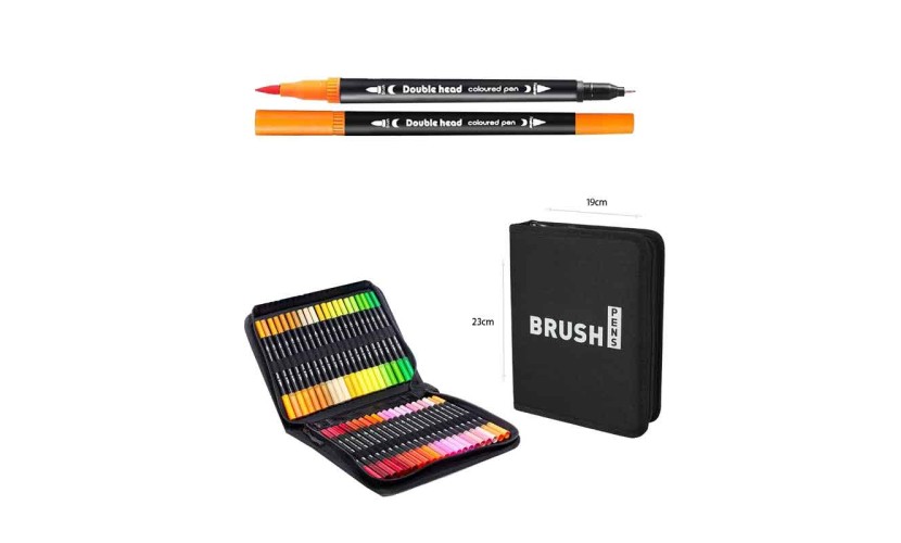 Επαγγελματικό σετ μαρκαδόρων brush 36 τεμαχίων με διπλή μύτη, ιδανικό για ζωγραφική, σκίτσο, lettering, manga, σχέδιο μόδας και καλλιτεχνικές δημιουργίες. Κάθε μαρκαδόρος διαθέτει δύο άκρες: μία λεπτή για λεπτομέρειες και γραμμές ακριβείας και μία brush για σκιάσεις, γεμίσματα και καλλιγραφία.
